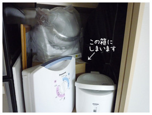 置き場は押入れの一番上の段、手前には布団乾燥機や加湿器が。年に一度のことなので出し入れしやすい場所に置く必要はないけれど、手前のモノをどけなきゃいけないし脚立に乗らなきゃいけないし、やっぱりちょっと面倒です。