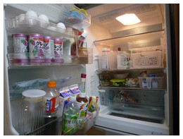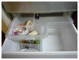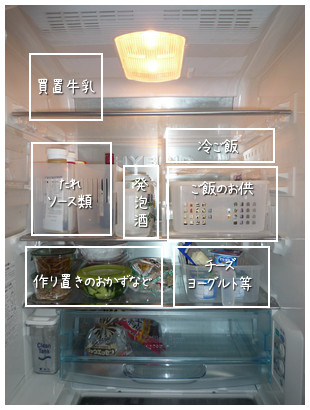 他の収納場所のように、ただ適当に突っ込むんじゃなくて最初からある程度場所を決めておくことが大切なようですね。ヨーグルトは本来チルドルームに入れるべきなんだろうけど、たまたま今回はないけれどたいていお肉が占領しているので、定位置はチルドルームの上へ。ここなら子供も見つけやすいだろうし。