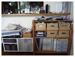 部屋の方は、意識してお客様をお招きするよう心がけているので、以前のように床に物が散乱して・・・という状況にはならずに済んでいます。ただ、適当にしまいこんでしまうとその後ものすごく大変になるので、置き場が決まっていないものが空き箱などに放り込まれたまま部屋の片隅に鎮座していたりはします。