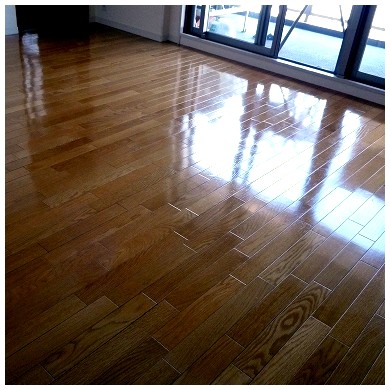 フローリング専用のワックスを塗ったので、硬めの皮膜でフローリングを守ってくれます。てっかてかだけど滑り辛いので安心、というかむしろ素足だと足の裏に吸いつくような感覚でまったく滑りません。しかも耐水性にも優れているらしい。まだまだうちの子食べこぼしをするので、しっかりコート出来て安心です。