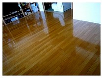 調べてみたら、前回は2年前2009年11月。ワックスの効果は6ヶ月って書いてあるけど・・・ その時はソファやダイニングセットを片側に寄せ、リビングスペースとダイニングスペースに分けてワックスがけしました。でも今回は一度にやって爽快感を味わいたかったので、重たいダイニングテーブルをなんとか子供部屋へ、ソファも引きずりながら和室へ、カウンター下の棚類もすべて搬出し、テレビボードだけを残した広々空間にしました。そこまでで約1時間経過。