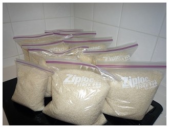 早速近所のスーパーでジップロックストックバッグを購入し、作業に取り掛かりました。28kgのお米をジップロックに詰替えるだけでも一苦労です(´д`)