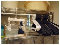 洗濯機から取り出した洗濯物は、洗面所でハンガー類に掛けベランダへ運びます。東向きのベランダなので、日が当たる朝のうちは出来るだけベランダにいる時間を短縮したい、ということでこの方法です。