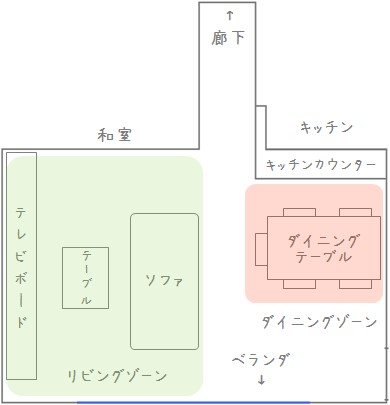 でも良~く考えてみると、近頃はお友達が来てもテレビゲームをするときはソファの周辺で、おもちゃを広げる時には和室で遊んでいるので、リビングと和室を一続きにする必要はないのかも? と思い早速ソファを移動してみました。